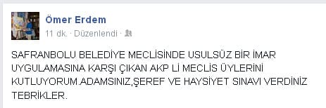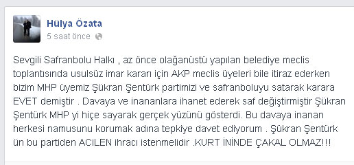 Bu gelişmeler sonucunda, MHP’liler tarafından, AK Parti ile ortak hareket ettiği ve grup kararına uymadığı gerekçesiyle MHP Safranbolu Belediye Meclis üyesi Şükran Şentürk’ün istifası gündeme getirildi.