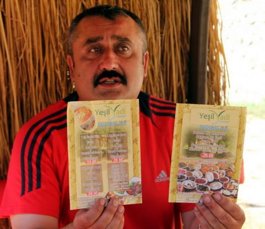 Pazartesi sabahı kanyona gelen misafirin Dışişleri Bakanı Ahmet Davutoğlu’nun olduğunu gördük. Yanında ailesi olduğundan biz de 30 kişiye göre hazırlanan 4 masayı birleştirince ortaya böyle bir manzara çıktı. Bu durum karşısında Sayın Bakanımız hatta bize kızarak bunların israf olmaması için kaldırılmasını istedi. Biz de hemen kaldırdık. Normalde daha önceden bastırdığımız afişlerde de ürün çeşitlerimiz var.