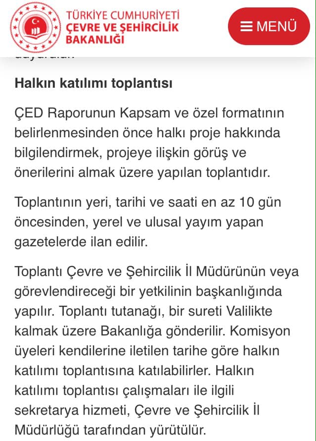 Çevre Yasası Çevresel Etki Değerlendirmesi (ÇED) yönetmeliğince şirket HALKIN KATILIM TOPLANTISI düzenlemek zorundadır.