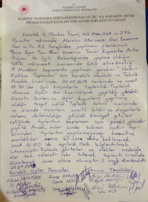Karabük Belediye Başkanı Rafet Vergili, belediye anons sisteminden sürekli ÇED Raporu toplantısı yapılacak diye anons yaptırarak Marzinc’in bu “oldubittiye getirme” taktiğini biraz olsun bertaraf etti.
